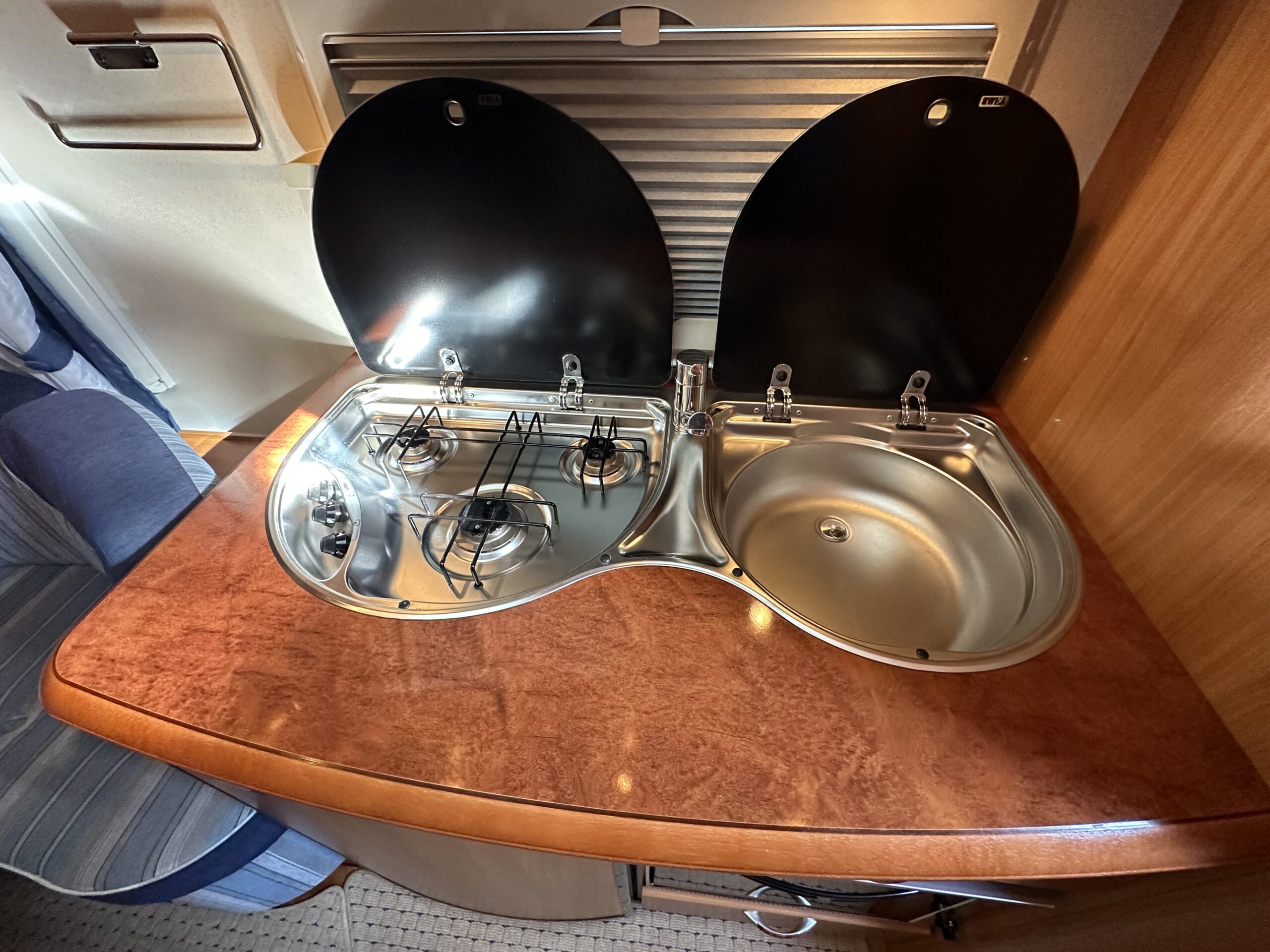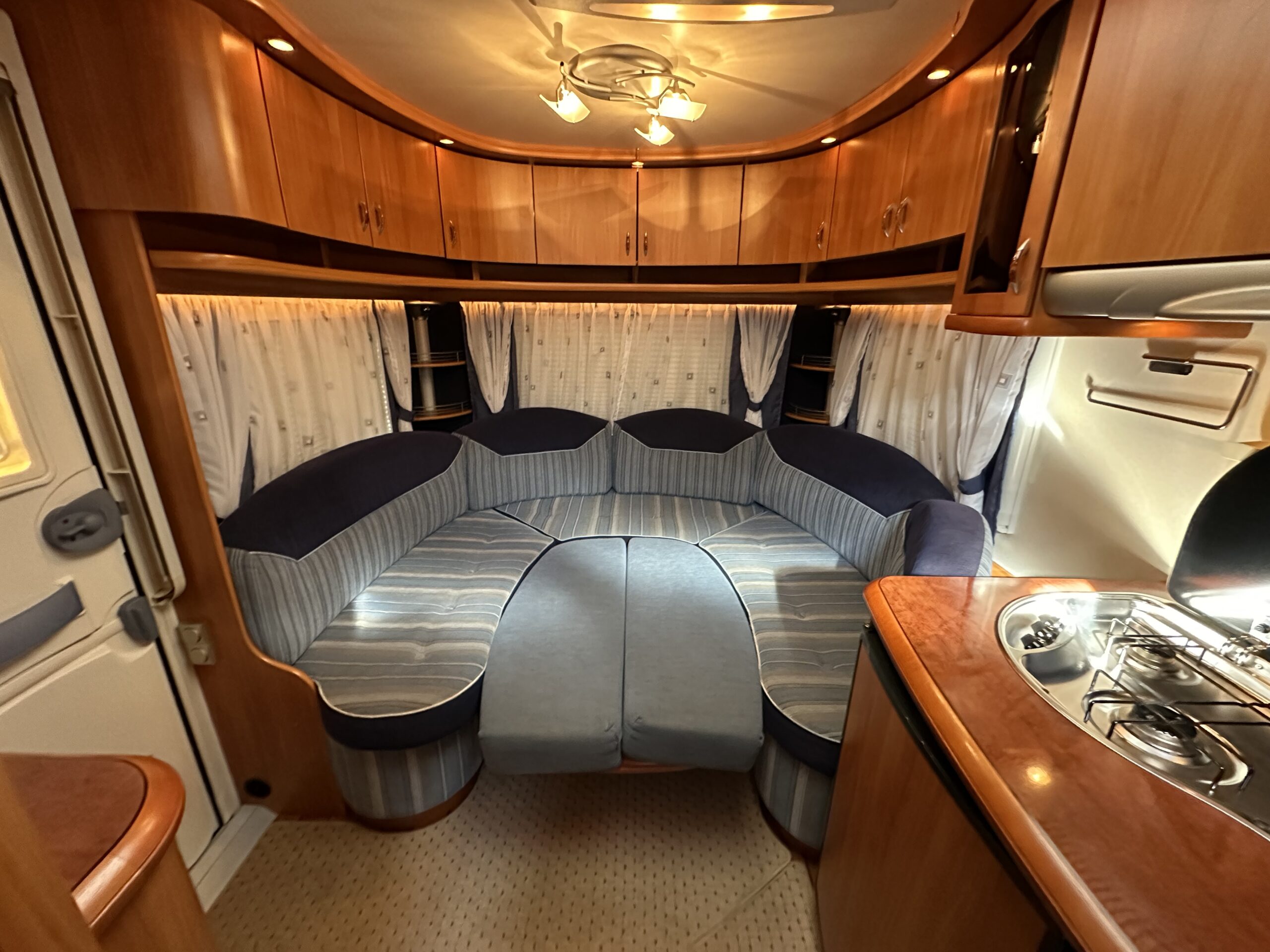 Przyczepa kempingowa HOBBY 540 Rocznik 2005 DMC 1500 Przyczepa posiada -przedsionek 5 m -ciepła woda -pomieszczenie łazienkowe -piec z nadmuchem -wc chemiczne -wszystkie okna uchylne -kuchenka 3 palnikowa -piekarnik
